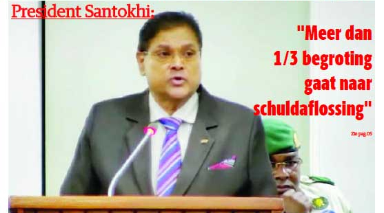Meer dan 1/3 van de overheidsbegroting voor het dienstjaar 2023 gaat naar de aflossing van schulden. Op de totale begroting van SRD 37,2 miljard komt dat neer op ruim SRD 13,5 miljard. Aan personeelsuitgaven is SRD 7,5 miljard begroot. Dit komt neer op 20 procent van de begroting.
