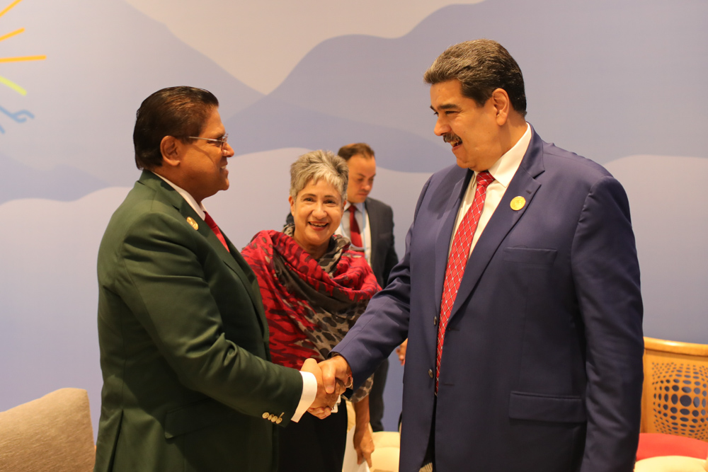 Een deel van de toespraak van de Surinaamse president was in de loop van dinsdagochtend al te zien en te horen op de YouTube-pagina van de Venezolaanse zender teleSUR. Niet vreemd die aandacht voor Santokhi en Suriname vanuit de zijde van Venezuela. Immers, zo blijkt ook uit diverse berichten op Twitter, president Santokhi heeft uitgebreid gesproken met zijn Venezolaanse collega Nicolas Maduro. Ze bespraken, zo wordt bericht, “nieuwe samenwerkingsmechanismen en bekijken de uitdagingen die moeten worden aangegaan in de strijd tegen klimaatverandering”.
