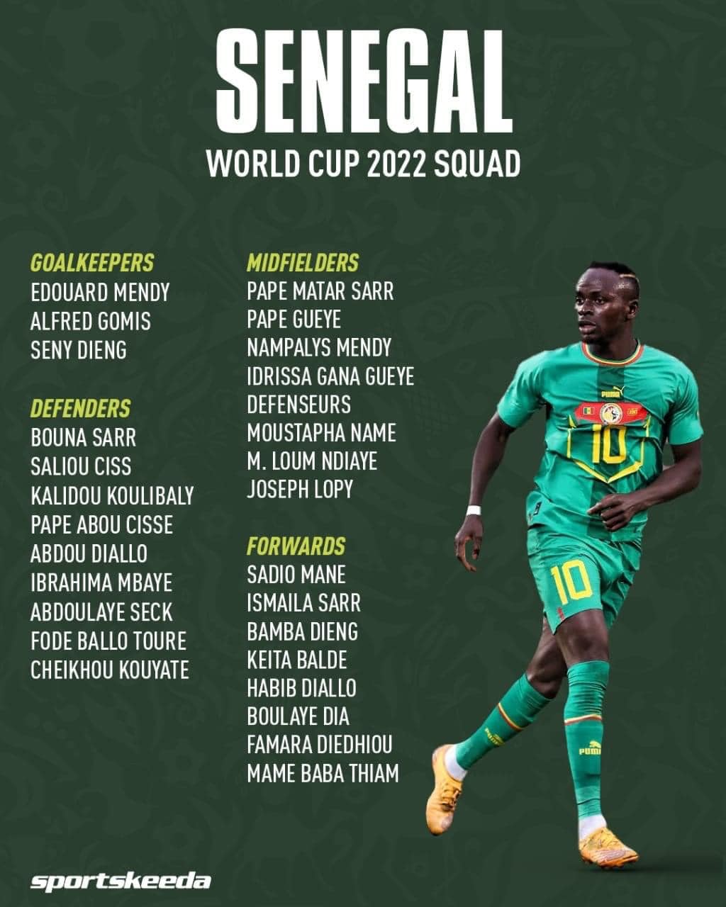 Senegal heeft Sadio Mané in hun WK-selectie opgenomen, ondanks dat de aanvaller van Bayern München een blessure twijfelt.