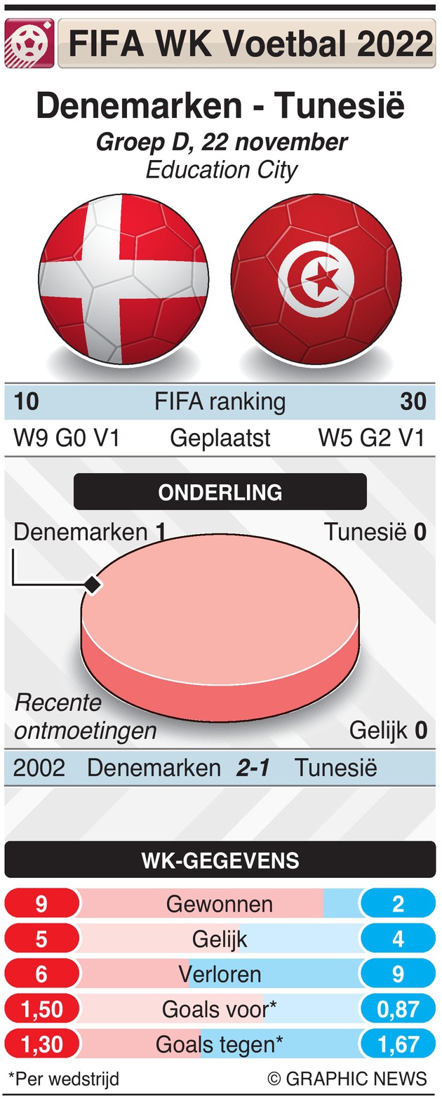Denmark, who are appearing at their sixth World Cup finals, begin their campaign against Tunisia on Nov. 22 before taking on defending champions France four days later.