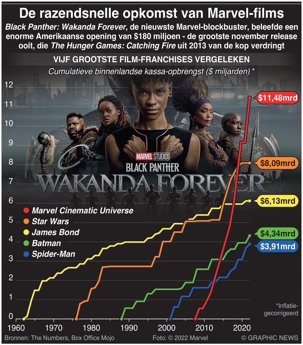 14 november 2022 – “Black Panther: Wakanda Forever”, de nieuwste Marvel-kaskraker, bereikte een enorme Amerikaanse opening van $ 180 miljoen – de grootste november-release ooit, waarmee “The Hunger Games: Catching Fire” uit 2013 werd overgenomen.