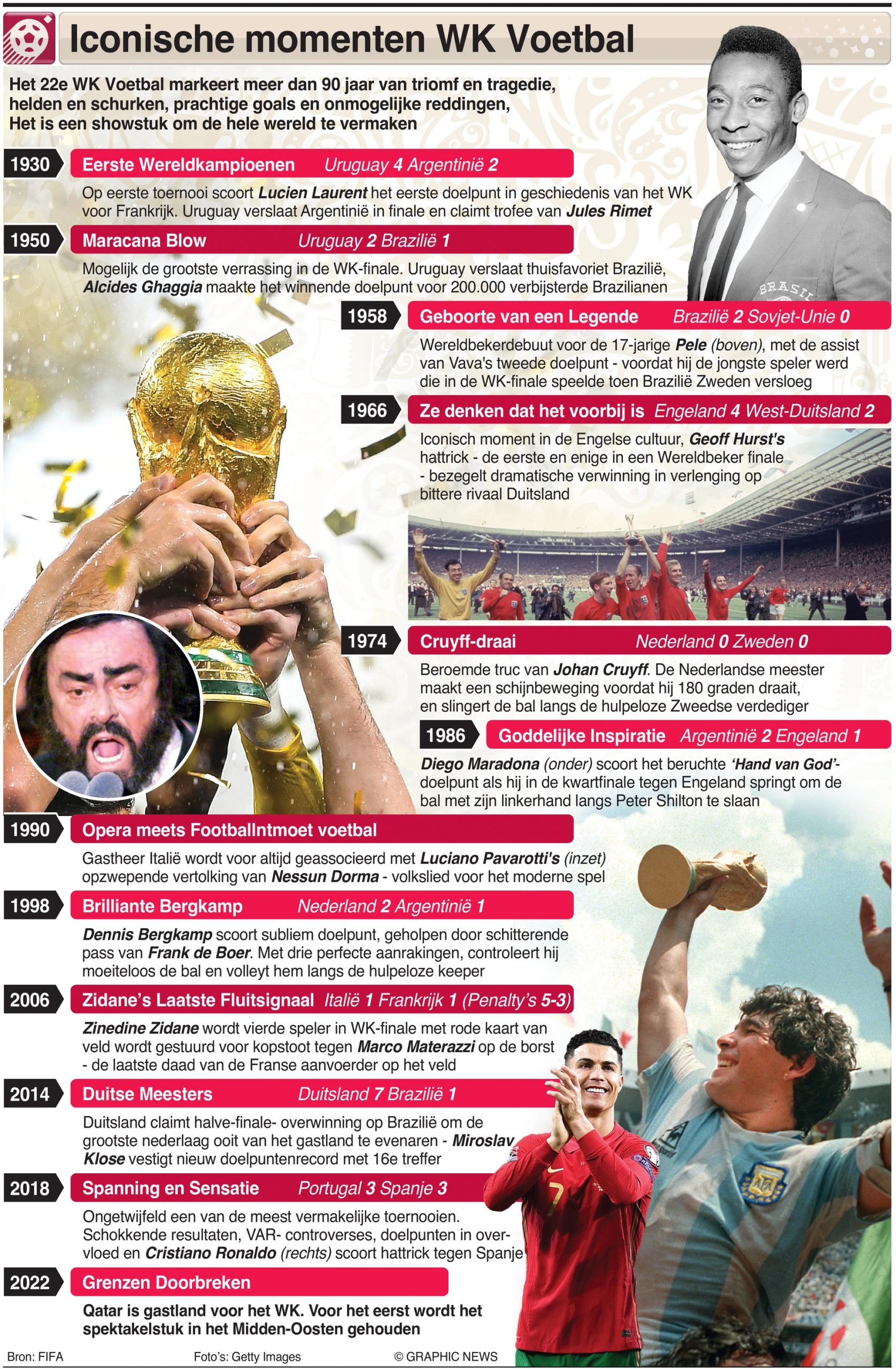 1950 – Mogelijk de grootste ontgoocheling in de WK-finale. Uruguay versloeg thuisfavorieten Brazilië, Alcides Ghaggia maakte het winnende doelpunt voor 200.000 verbijsterde Brazilianen.