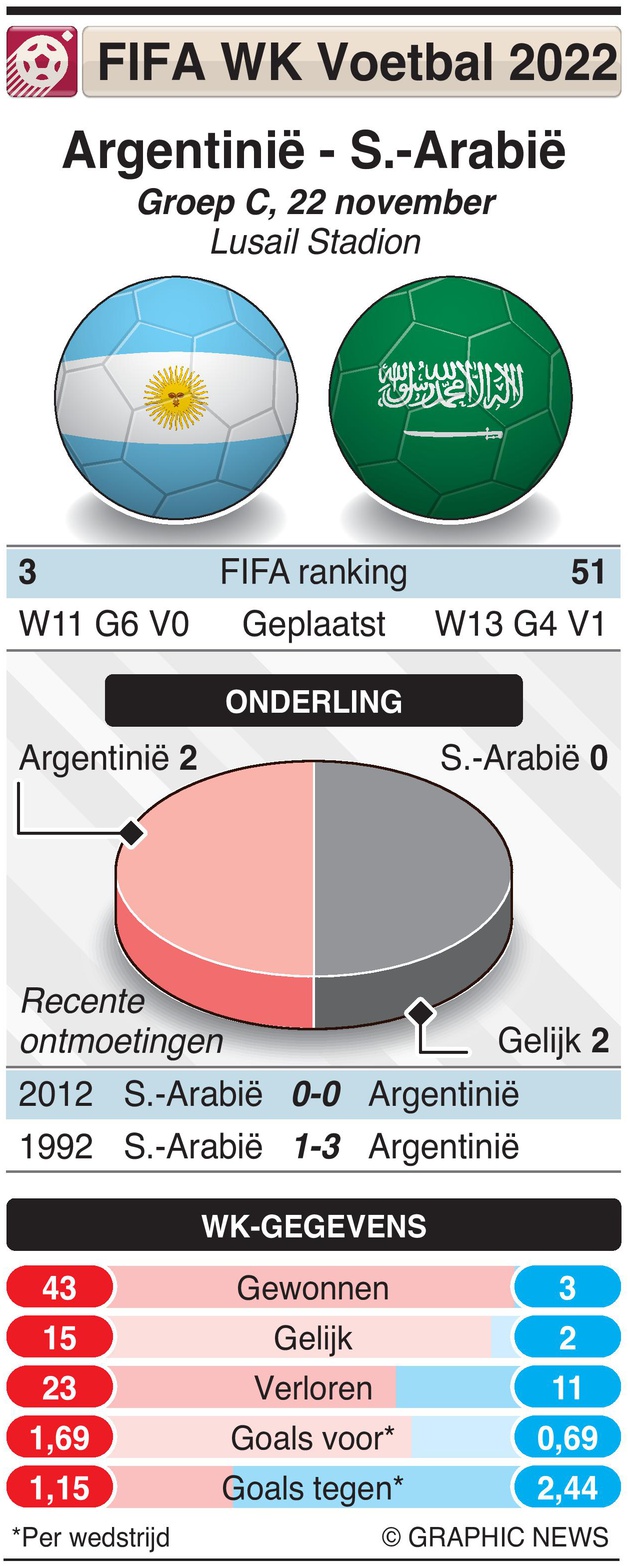 De openingswedstrijd van Argentinië op het WK is op 22 november tegen Saoedi-Arabië in Groep C, waar ook Mexico en Polen deel van uitmaken.