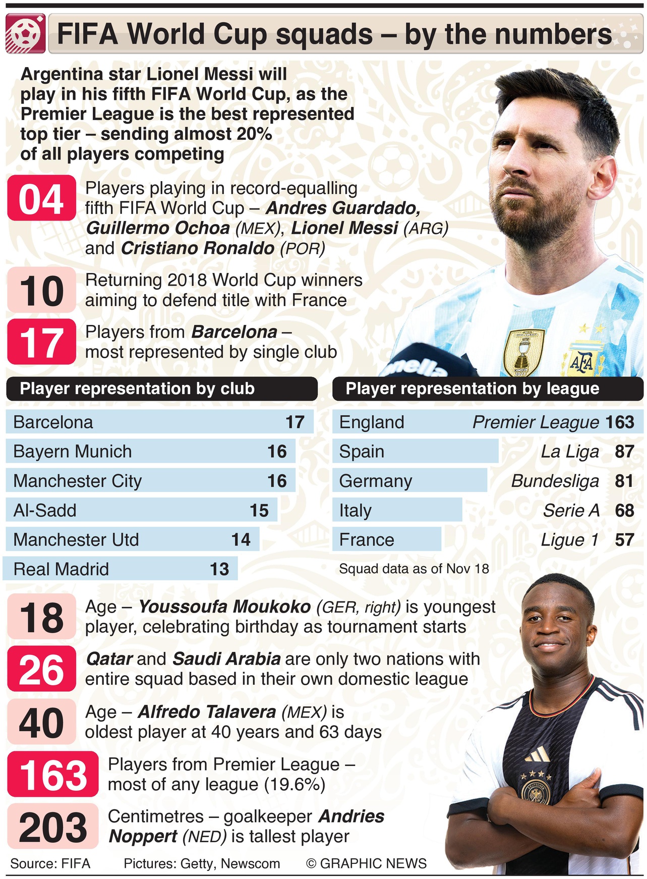 20 november 2022 – 18 december 2022 – De FIFA Wereldbeker vindt plaats in Qatar, met 32 teams die strijden om de titel Wereldkampioen. De Argentijnse ster Lionel Messi speelt in zijn vijfde FIFA Wereldbeker, aangezien de Premier League de best vertegenwoordigde toplaag is en bijna 20% van alle spelers afzendt.