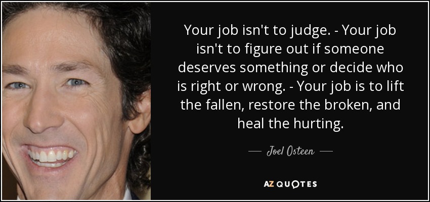 “Our job isn’t to judge or to figure out if someone deserves something also not to decide if someone is right or wrong. Our job is to lift the fallen, restore the broken and heal the hurting.”