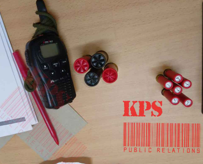 Op hen werden aangetroffen en inbeslaggenomen 6 kaliber 12 hagelpatronen, 6 kaliber 38 hagelpatronen en een portofoon.