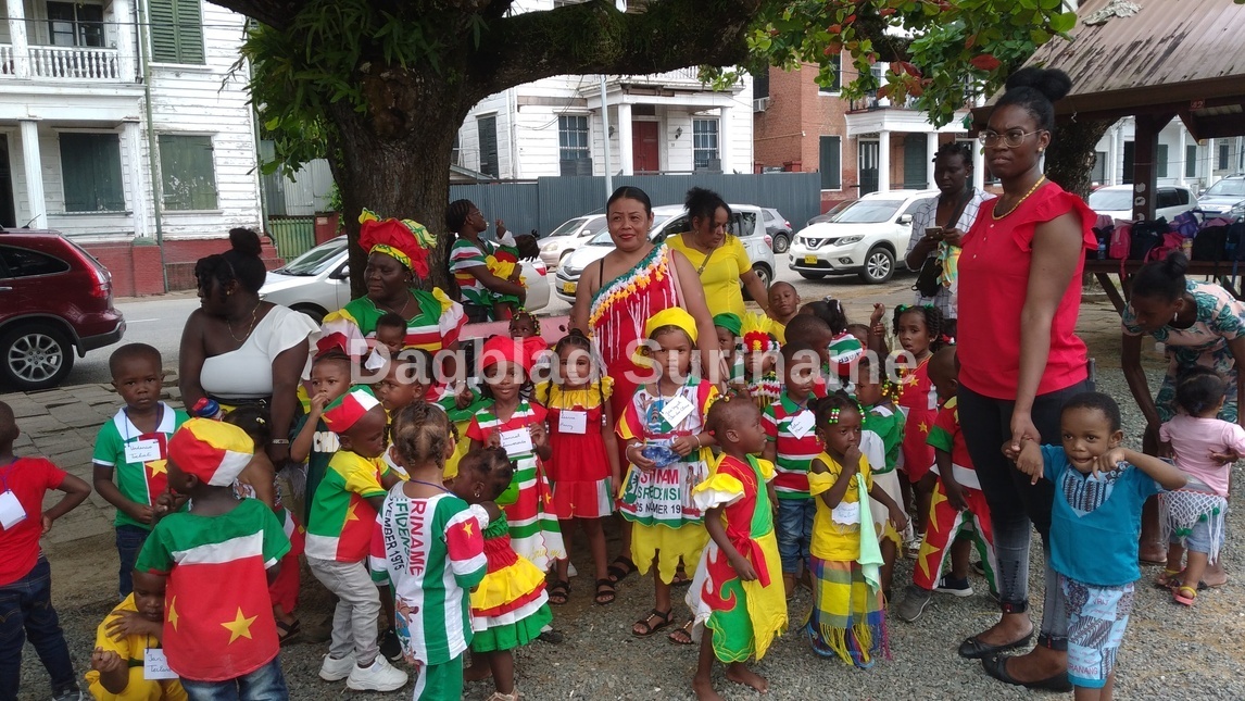 Zesenveertig uitgedoste kleuters van Rijsdijk Oppas en Kleuterschool brachten donderdag 24 november onder begeleiding van negen leidsters een bezoek aan Paramaribo.