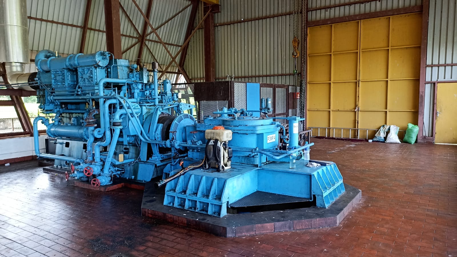 - Foto onderschrift: Eén van de twee herstelde pompen te Wakay die sedert afgelopen vrijdag weer functioneert. Van de vier verouderde pompen die het Wakay gemaal telt, zullen twee middels nieuwe worden vervangen. LVV is bezig via openbare aanbesteding deze aan te schaffen.-