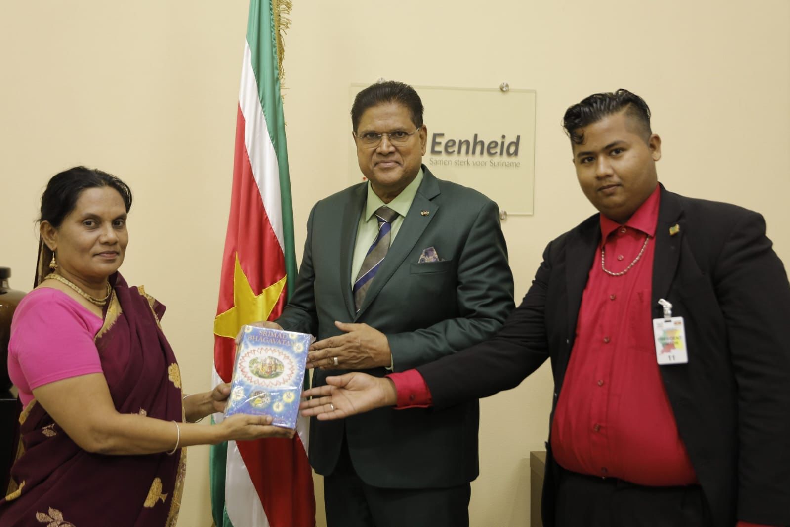 in ontvangst mogen nemen uit handen van Laxmipriya Devi Dasi (LilyBhagawandin) en Radha Charan Dasa (Rahul Biharie) namens Stichting ISKCON Suriname.
