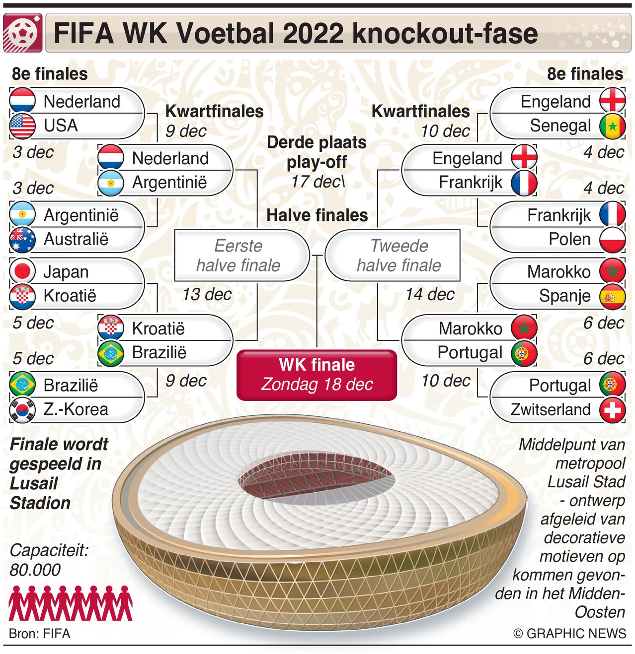 9 december 2022 – 10 december 2022 – De FIFA Wereldbeker in Qatar bereikt de kwartfinales, waarbij de 8 overgebleven teams strijden om de titel Wereldkampioen.