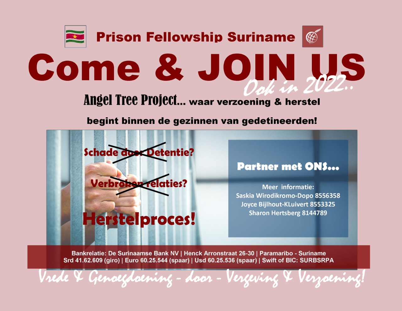Prison Fellowship Suriname (PFS) is een organisatie die sinds 1999 bestaat en zich inzet voor gedetineerden, ex-gedetineerden en hun gezinnen. In december zal de organisatie het Angel Tree Project (ATP) wederom uitvoeren.