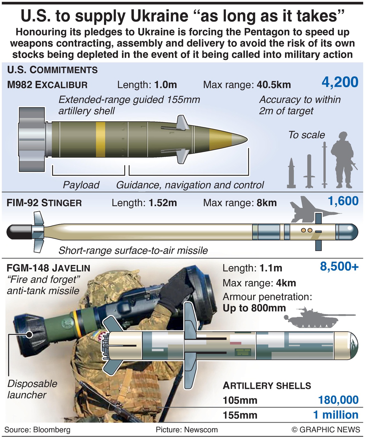 Hoewel de uitgaven van het Pentagon gericht waren op de hightech – stealth-jets en hypersonische raketten – vereist de verdediging van Oekraïne artillerie en pantserdoorborende wapens, waarvan de productie in sommige gevallen jaren geleden is gestaakt. De VS worden nu geconfronteerd met de noodzaak om de productie op te voeren, zodat hun eigen voorraden niet onder het niveau komen dat nodig is om hun eigen grondgebied of een van de andere potentiële theaters te verdedigen, bijvoorbeeld in de Indo-Pacific.