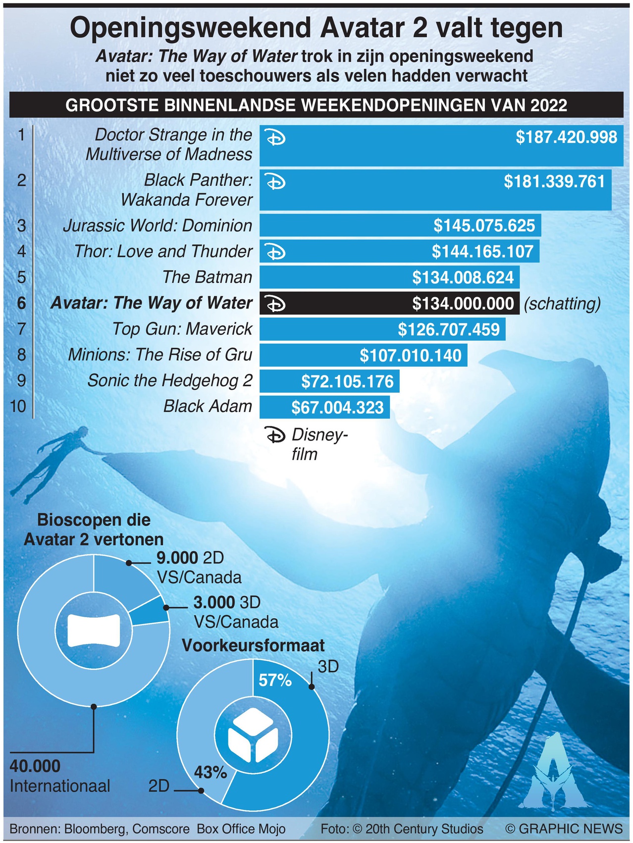 19 december 2022 – Avatar: The Way of Water maakte in het openingsweekend niet zo groot aan de kassa zoals velen hadden verwacht.