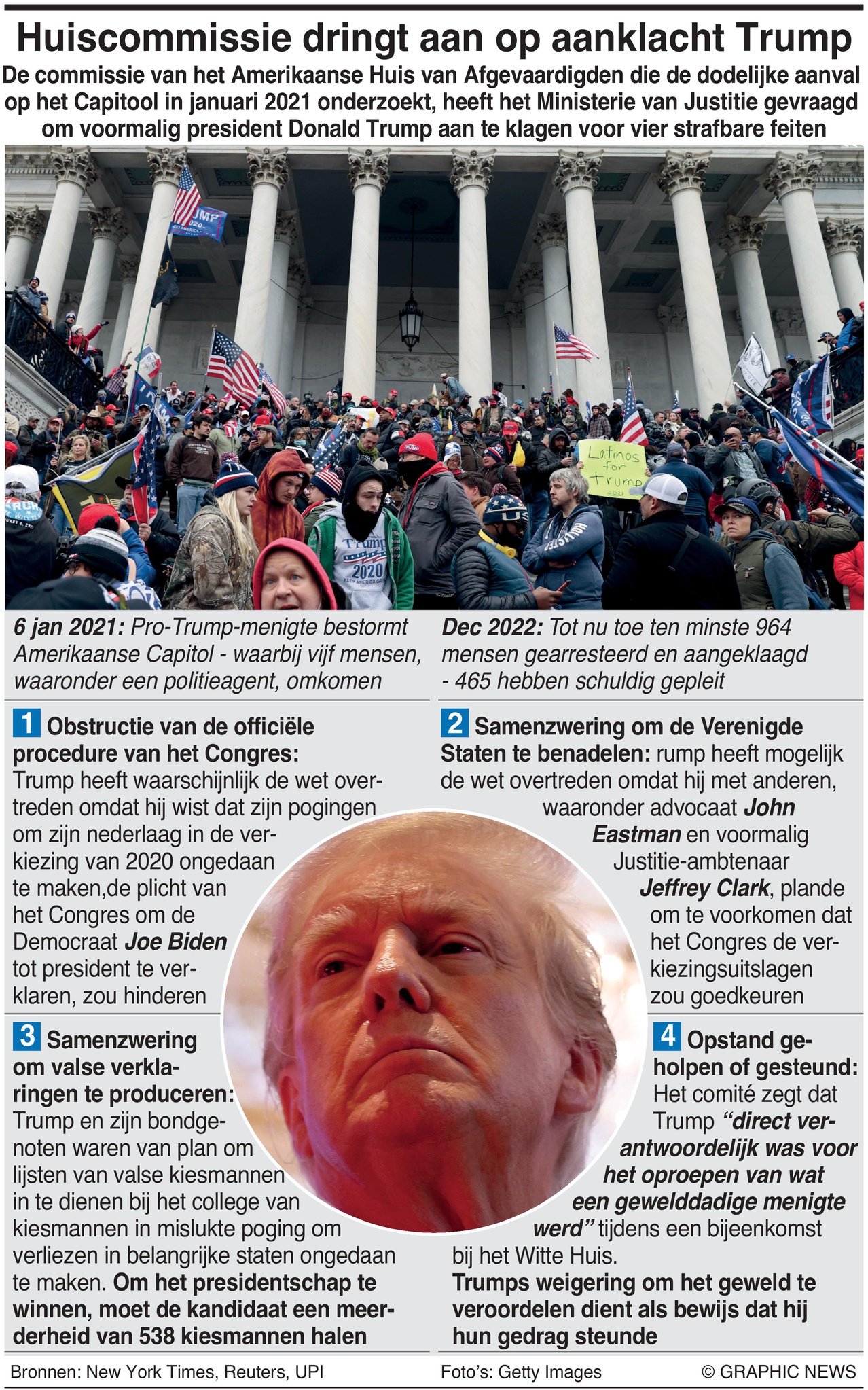 December 20, 2022 – Het panel van het Amerikaanse Huis van Afgevaardigden dat de dodelijke aanslag op het Capitool in januari 2021 onderzoekt, heeft het ministerie van Justitie gevraagd om voormalig president Donald Trump te beschuldigen van vier misdrijven.