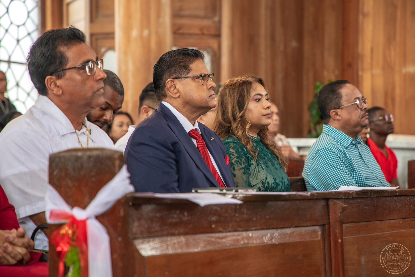 President Chandrikapersad Santokhi en First Lady Mellisa Santokhi-Seenacherry hebben de Kerstmis in de Kathedrale Basiliek van Sint Petrus en Paulus bijgewoond.