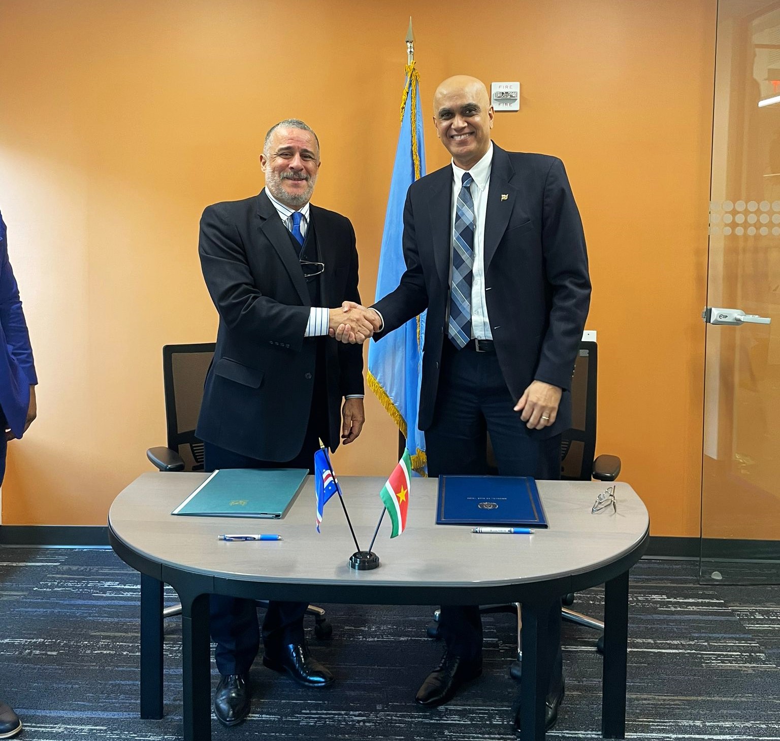 Suriname en Kaapverdië zijn maandag 12 december formeel diplomatieke betrekkingen aangegaan bij de Permanente Missie van Suriname bij de Verenigde Naties in New York. Het Gezamenlijke Communiqué in dat kader is getekend door de Permanent Vertegenwoordiger van Suriname bij de Verenigde Naties, ambassadeur Sunil Sitaldin, en de Permanent Vertegenwoordiger van Kaapverdië bij de Verenigde Naties, ambassadeur Júlio César Freire De Morais.