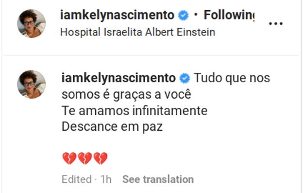 Rond de kerstdagen beleefde Pelé met zijn familie ontroerende momenten in het ziekenhuis, liet zijn dochter Kely Nascimento eerder op Instagram weten. “Soms is er veel verdriet en wanhoop, andere momenten lachen we en praten we over grappige herinneringen. En wat we het meeste leren is dat we elkaar moeten opzoeken, elkaar moeten vasthouden. Dat is de enige manier waarop het loont. Allen tezamen.”