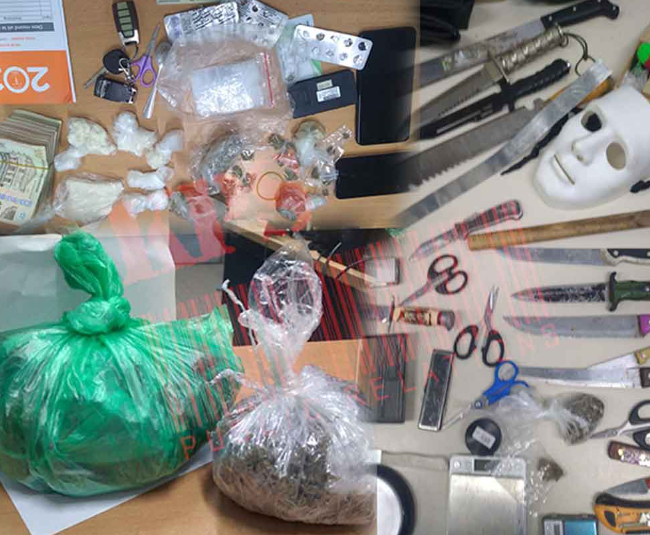 Verder werden op de drugslocaties een aantal scherpe voorwerpen, breekwerktuigen en geldbedragen aangetroffen en inbeslaggenomen.