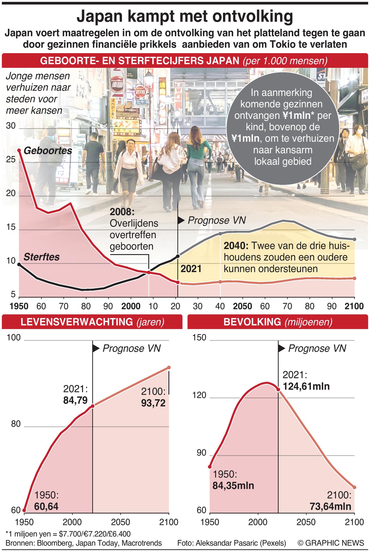 De Japanse hoofdstad Tokio heeft ongeveer 14 miljoen inwoners, Groot-Tokio is met zo’n 35 miljoen inwoners zelfs de grootste metropool ter wereld. Hoewel de bevolking vorig jaar voor het eerst afnam – een trend die deels toegeschreven wordt aan de coronapandemie – vinden beleidsmakers dat er meer moet worden gedaan om de bevolkingsdichtheid van de stad te verlagen en mensen aan te moedigen om een nieuw leven te beginnen in „uit de mode geraakte” delen van het land die getroffen worden door vergrijzing, krimpende bevolking en migratie van jongeren naar grote steden als Tokio en Osaka.