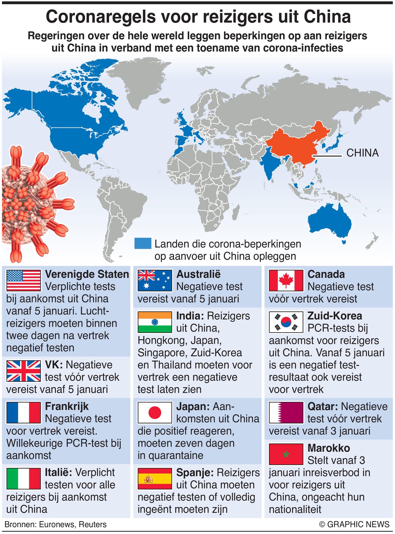 Overheden over de hele wereld leggen reizigers uit China beperkingen op, nu het aantal gevallen van coronavirus in het land toeneemt na de versoepeling van de “nul-Covid”-regels.