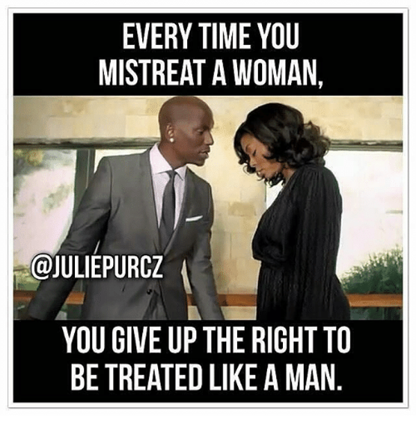 “Everytime a man mistreats a woman, he gives up the right to be treated like a man.”