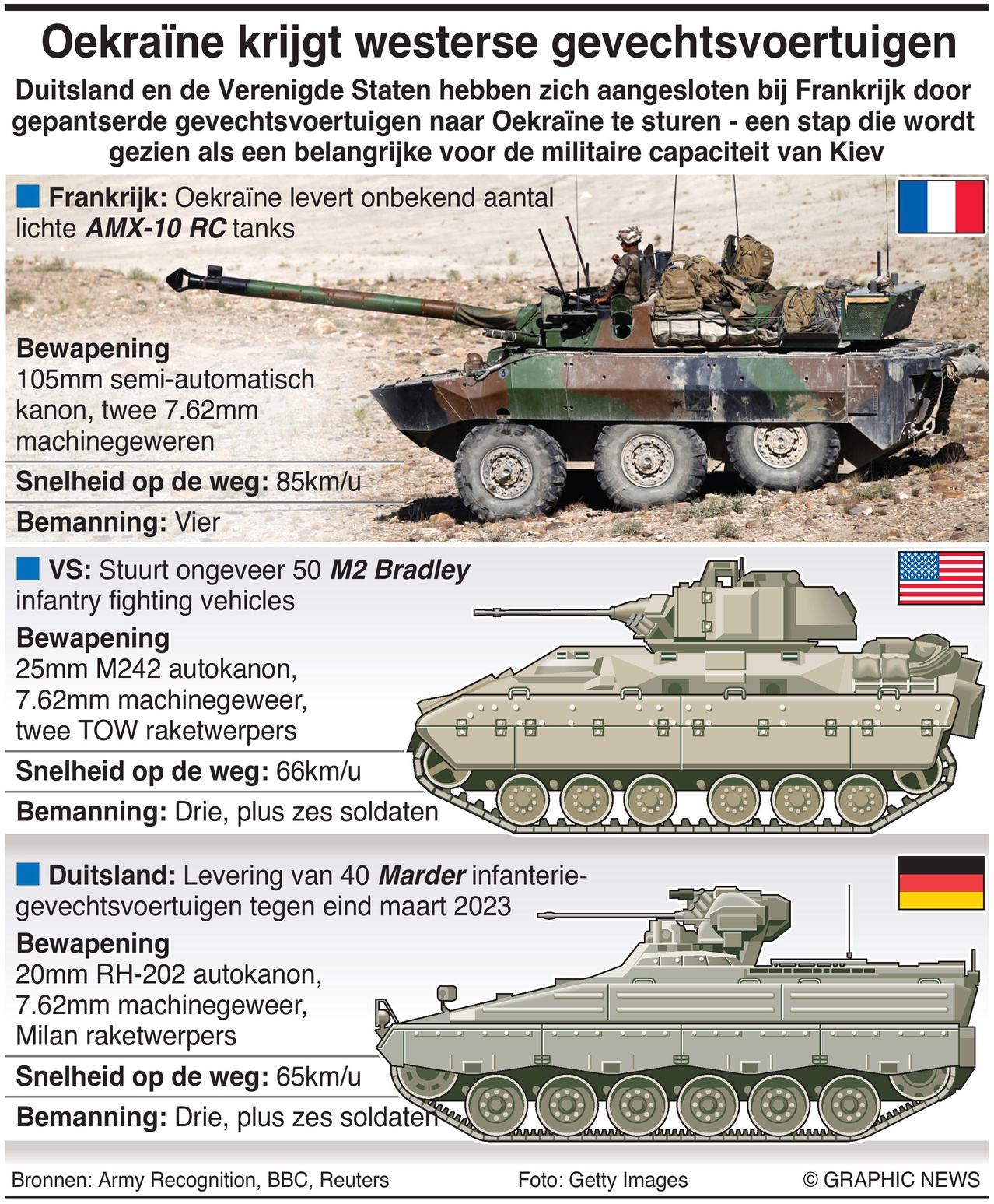 De Verenigde Staten zeiden dat het Oekraïne ongeveer 50 Bradley-infanterie-gevechtsvoertuigen zou leveren, terwijl Duitsland 40 Marder-infanterie-gevechtsvoertuigen zou sturen.