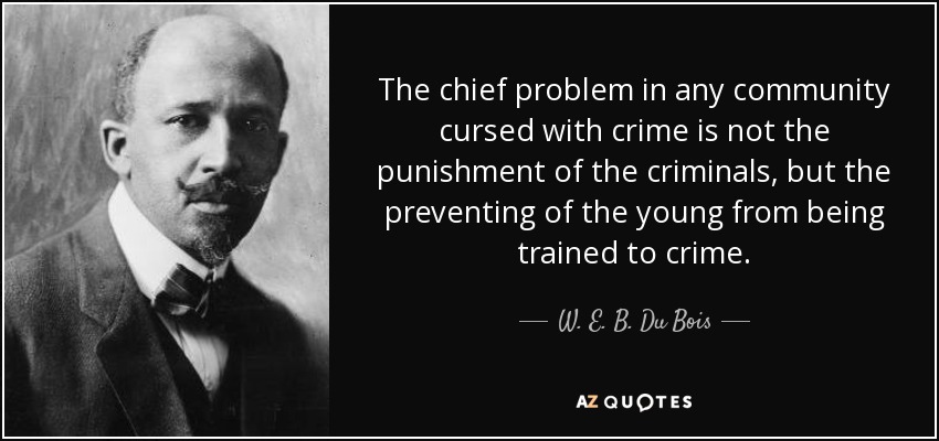 “The chief problem in any community cursed with crime is not the punishment of the criminals, but the preventing of the young from being trained to crime”(W.E.B. Du Bois)