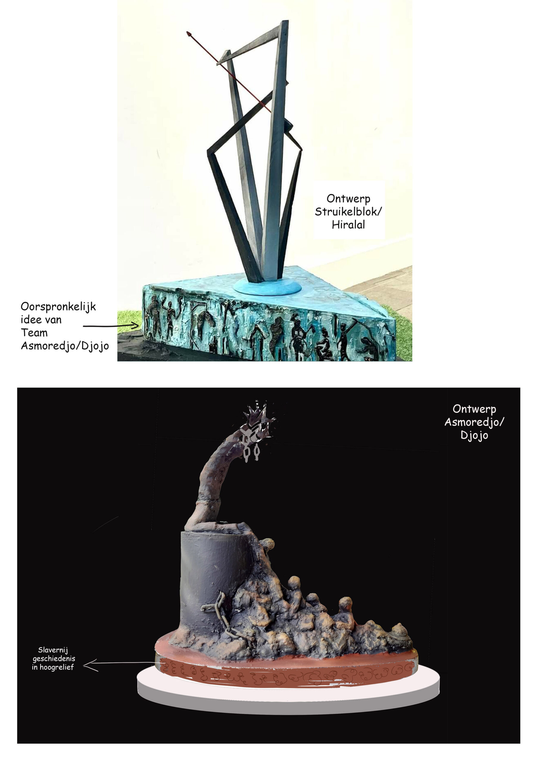 Dat heeft gemaakt dat een jury een ontwerp voor het slavernijmonument heeft gekozen van team George Struikelblok, Marianne Hiralall en anderen, dat gezien de reacties op internet niet goed overkomt, om het eufemistisch uit te drukken. Het ontwerp van Reinier Asmoredjo-John Djojo dat, toen alles anoniem was ingediend op de eerste plaats in de finale eindigde bij de eerste jury op 11 november 2022 en werd door de tweede (grotendeels dezelfde) jury op 3 januari 2023 plotseling weggestemd.