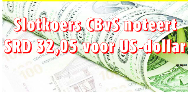 De stijgende trend van de wisselkoers lijkt aan te houden. Aan het eind van de week, gisteren vrijdagmiddag, noteerde de Centrale Bank van Suriname, CBvS, een slotkoers van SRD 32,05 voor de US-dollar en voor de Euro een slotkoers van SRD 32,56.