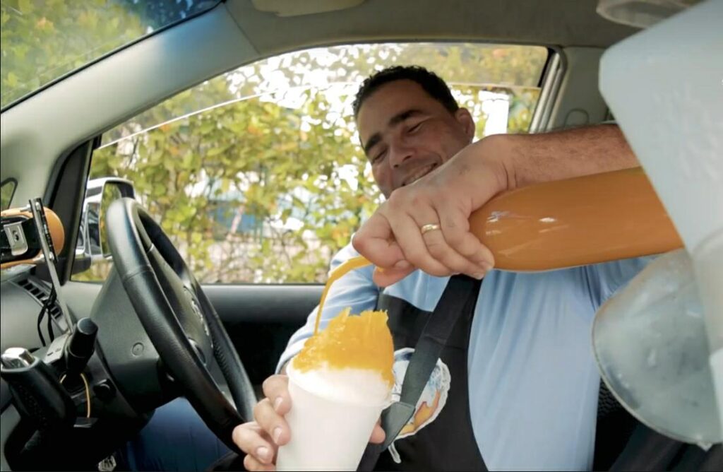 Pinas: “Er is nergens in de wereld zo een schaafijs verkoopbusje waarbij je vanuit je driver seat gelijk een schaafijs kan maken en verkopen. Nergens anders kan je een schaafijsman bellen voor minimaal 4 ijses en hij levert het ter plekke. Het wordt ook vlak voor je gemaakt, dus je ziet hoe het gemaakt wordt. Je kan op advies ook zelf bepalen welke mix je wilt of als je meer stroop wilt.”