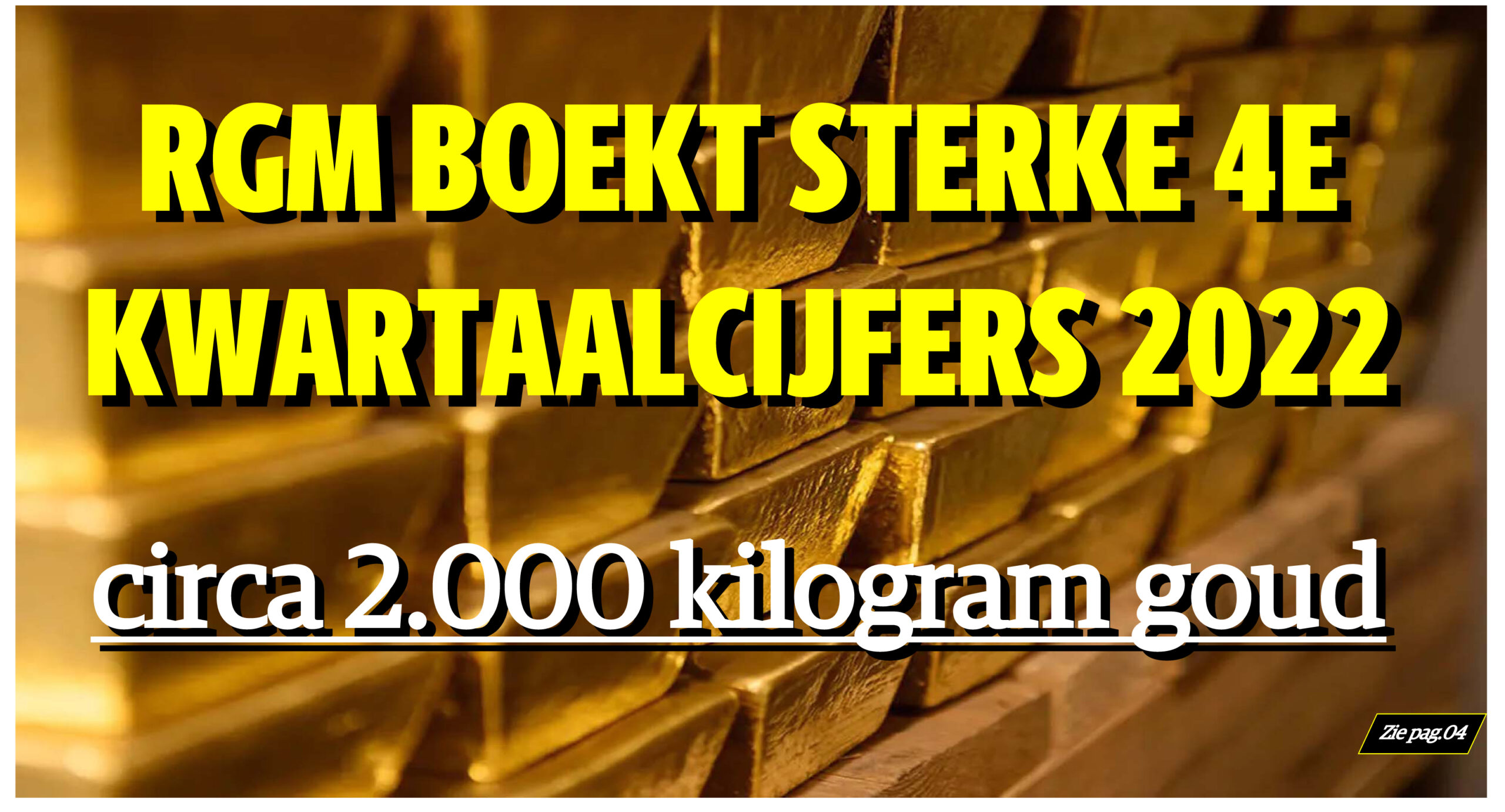 De Rosebel Goldmines N.V (RGM) heeft in het laatste kwartaal van 2022 een sterk goudproductie cijfer gehaald. Het goudbedrijf heeft 69.000 ounces goud geproduceerd, wat neerkomt op circa 1.956 kilogram. Afgezet tegen een gemiddelde goudverkoopprijs over dezelfde periode van US$ 1.670 per ounce, vertegenwoordigt dit een bedrag van circa US$ 115 miljoen. Over het gehele jaar 2022 genomen heeft RGM een goudproductie gerealiseerd van 214.000 ounce, oftewel 6.067 kilogram.