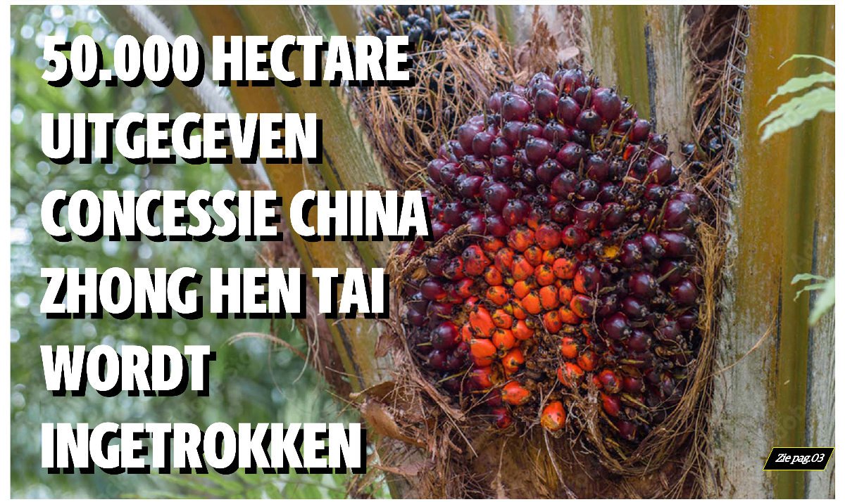 De in 2004 uitgegeven concessie van 50.000 hectare in het Patamacca gebied aan China Zhong Heng Tai voor de teelt van oliepalm zal worden ingetrokken. Het gebied zal een andere bestemming krijgen. Zo deelde president Chandrikapersad Santokhi woensdag mee op een persconferentie. Deze kwestie stond woensdag op de agenda van de vergadering van de regeringsraad.