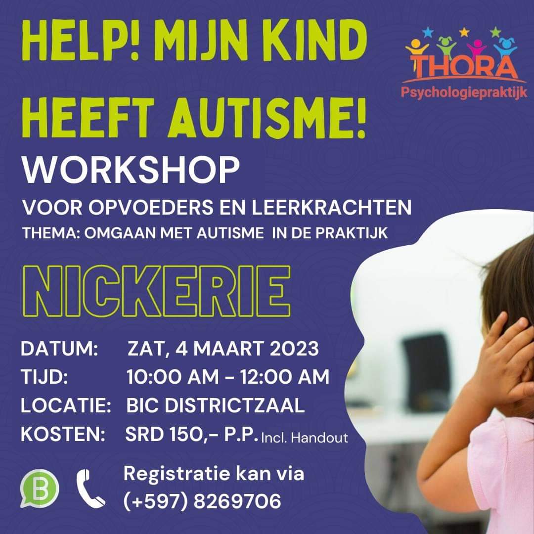 “Het zal een interactieve workshop zijn en wij willen dus ook voldoende aandacht hebben voor iedereen. Maar, indien er animo is, kunnen de dagen verruimd worden. Voor Thora is het belangrijk dat geĆÆnvesteerd wordt in alle personen die bereid zijn een steentje bij te dragen aan de ontwikkeling van personen met autisme in Nickerie”, aldus Goodett.