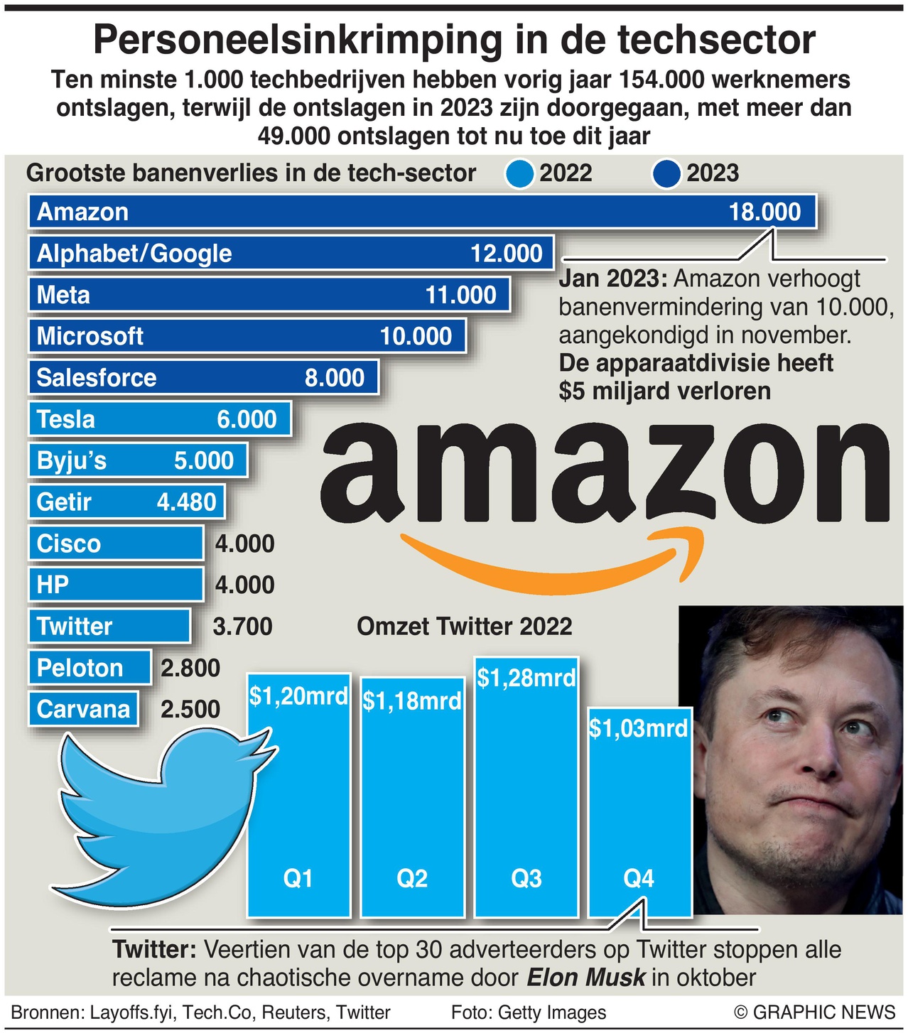 20 januari 2023 – Minstens 1.000 technologiebedrijven hebben vorig jaar minstens 154.000 werknemers ontslagen, terwijl de ontslagen in 2023 doorgingen, met meer dan 49.000 ontslagen dit jaar.