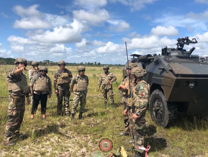 Minister Krishna Mathoera van Defensie, legerbevelhebber kolonel Werner Kioe A Sen, directeur Sherif Abdoelrahman en de Franse defense attaché luitenant-kolonel Jean-Marc Moulin hebben een deel van de vernietiging bijgewoond.