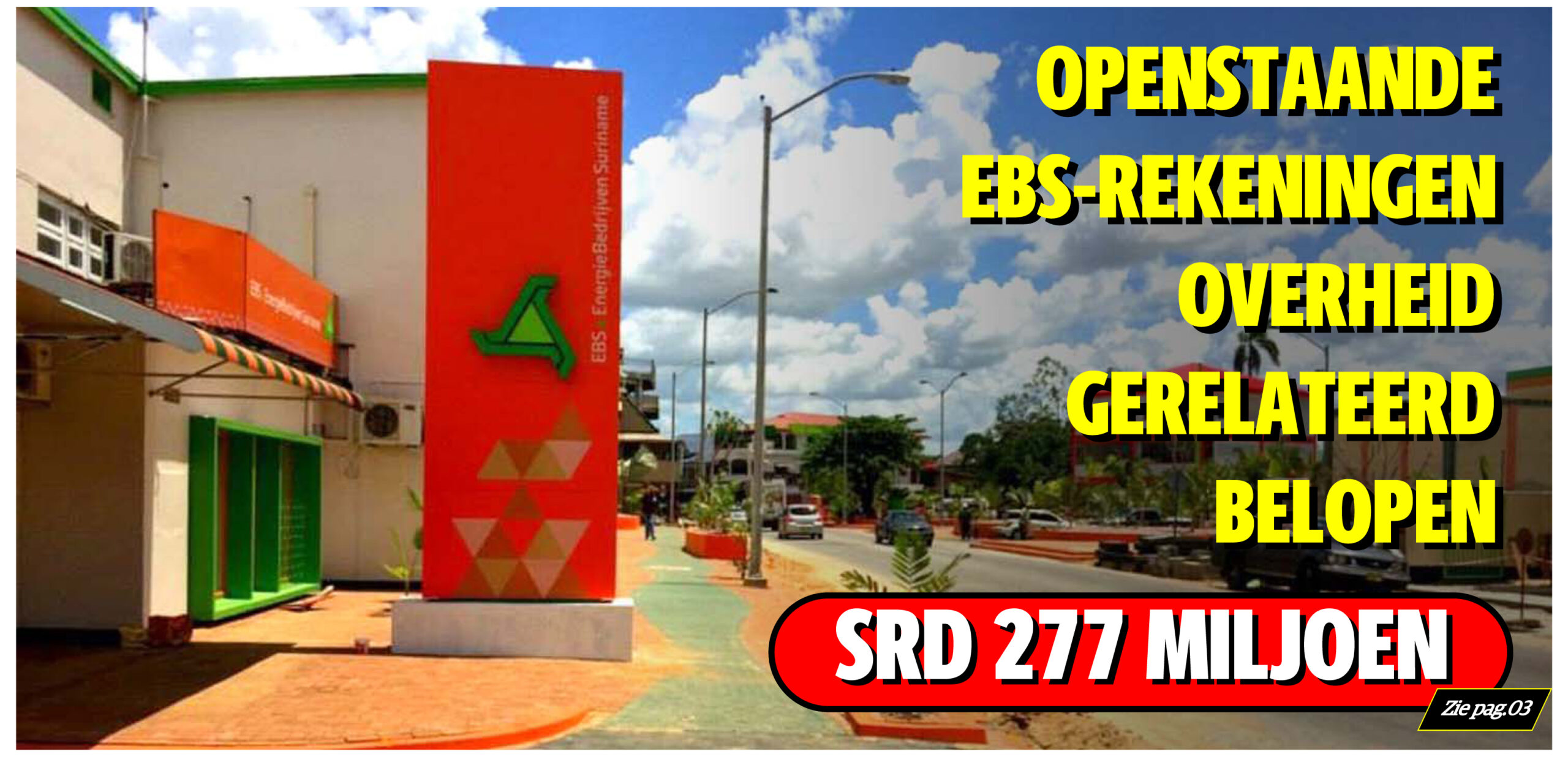 De openstaande EBS-stroomrekeningen van de overheid en overheidsgerelateerde verbruikers belopen een bedrag van ruim SRD 277,5 miljoen. Blijkens een overzichtslijst uit het rapport van de EBS-tarievencommissie heeft de Surinaamsche Waterleiding Maatschappij N.V (SWM) een openstaande stroomrekening bij de EBS (Energie Bedrijven Suriname N.V) van ruim SRD 92 miljoen. Voor straatverlichting heeft de overheid een openstaande rekening van SRD 54,5 miljoen.