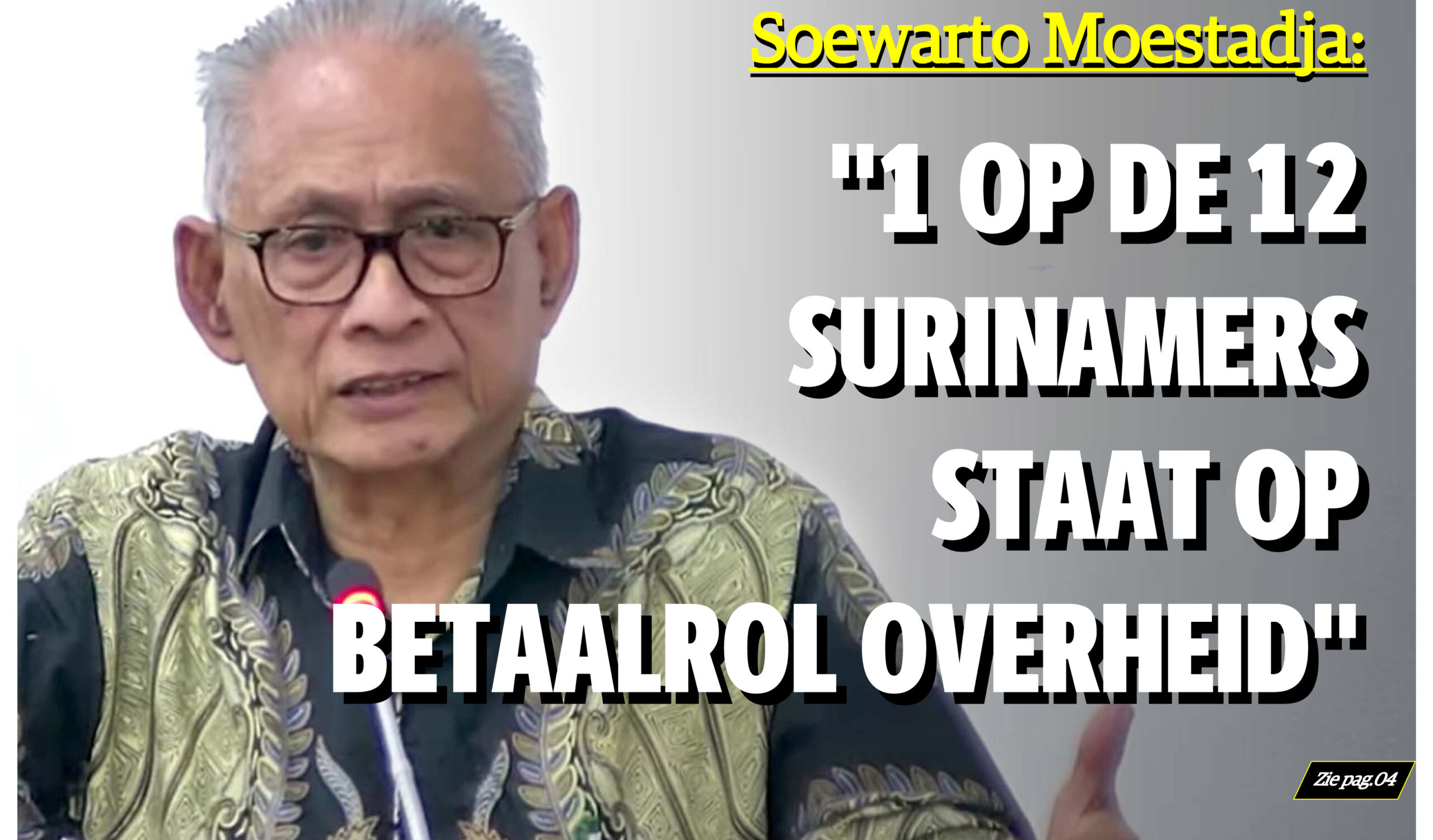 Eén op de twaalf Surinamers staat op de betaalrol van de overheid. Een kwart van de werkende bevolking zit bij de overheid. Acht procent van de bevolking is ambtenaar. Het ambtenarenapparaat is meer dan 53.000 groot. Maandelijks wordt aan in totaal 62.382 personen betalingen verricht. Het Assembleelid Soewarto Moestadja (NDP) noemde deze cijfers gisteren tijdens de behandeling van de ontwerpwetten nadere wijziging van de Personeelswet en de Ambtenaren Pensioenwet. Deze wijzigingen in de wetten zijn nodig om de verplichte ambtenarenregistratie die nu gaande is een wettelijke grondslag te geven.
