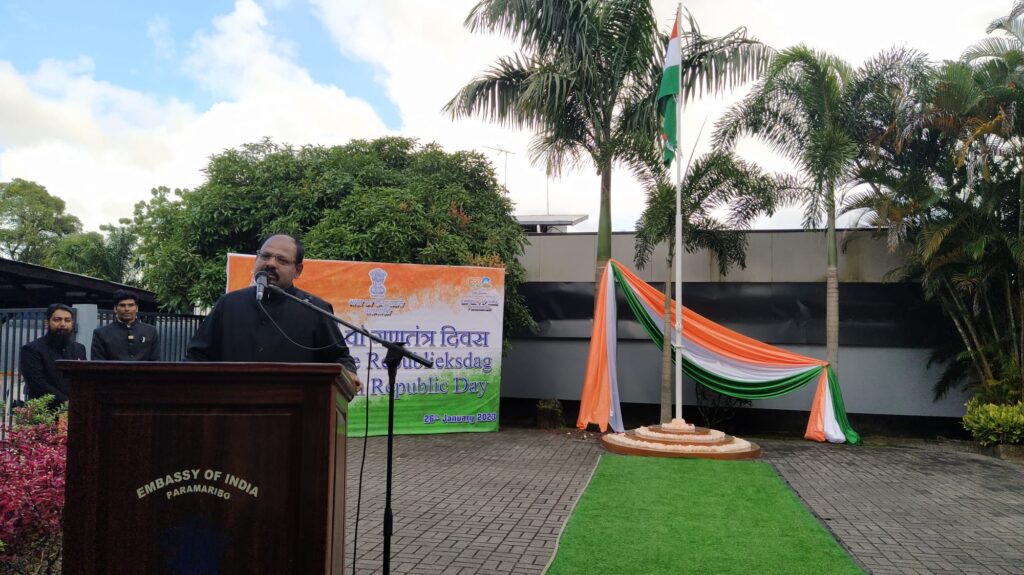 De ambassade van India in Paramaribo heeft donderdag 26 januari de 74e Dag van de Indiase Republiek gevierd met een grote bijeenkomst in aanwezigheid van de Indiase