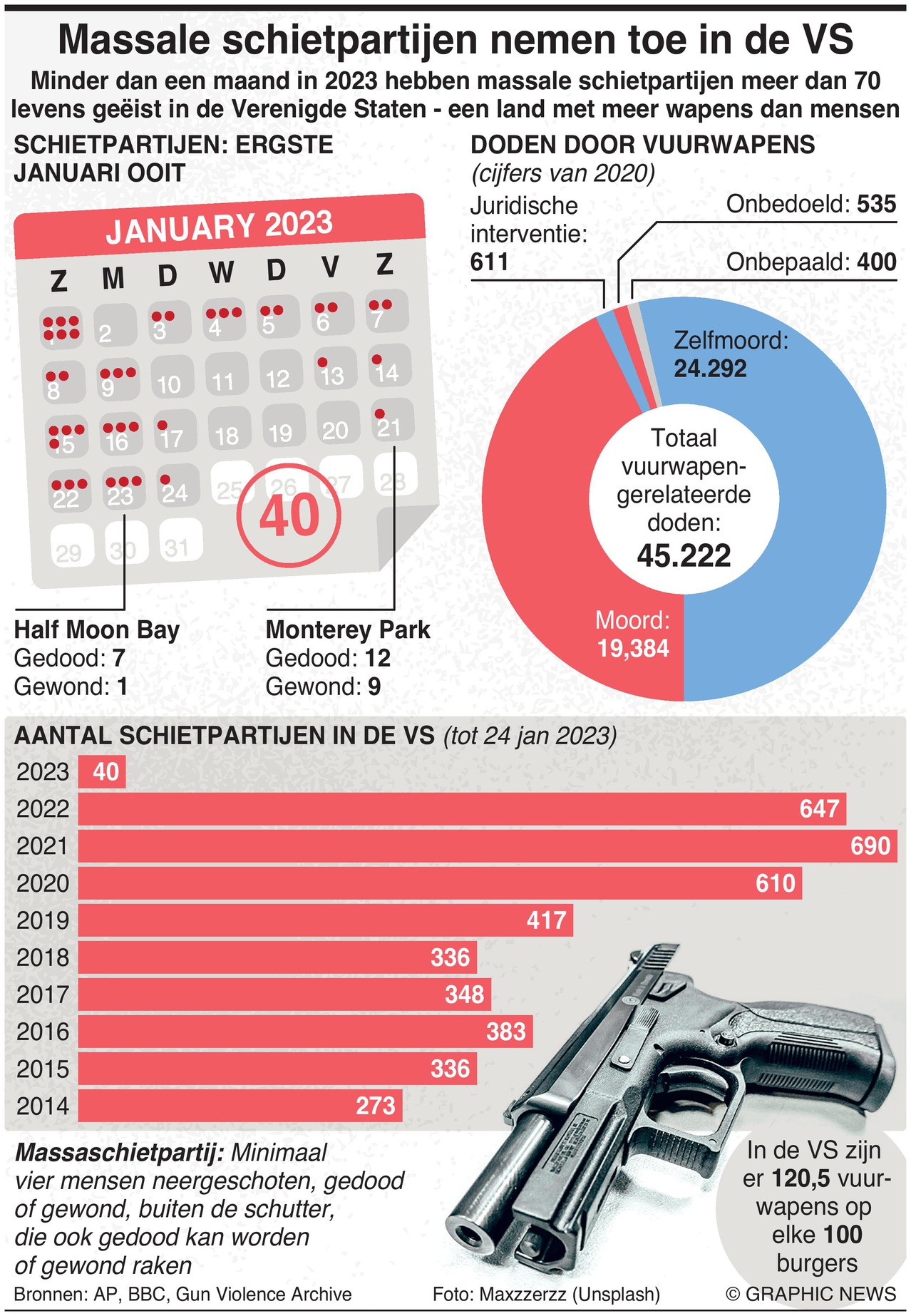 Volgens het Gun Violence Archive zijn er in 2023 al 40 massale schietpartijen geweest in de Verenigde Staten.
