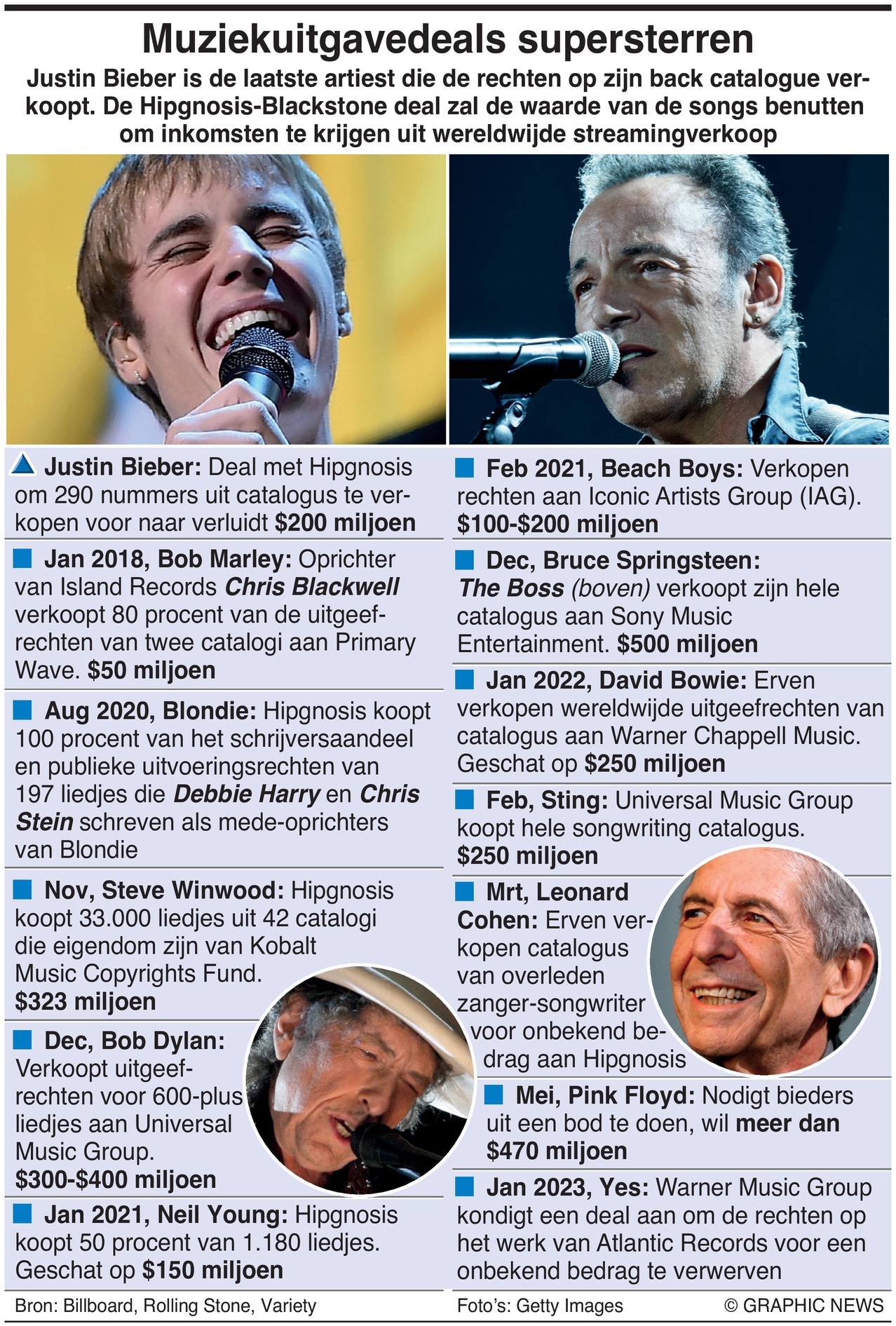 25 januari 2023 – Justin Bieber is de nieuwste artiest die de rechten op zijn oude catalogus heeft verkocht. De deal tussen Hipgnosis en Blackstone zal de waarde van de nummers benutten om inkomsten te ontvangen uit wereldwijde streaming-verkopen.