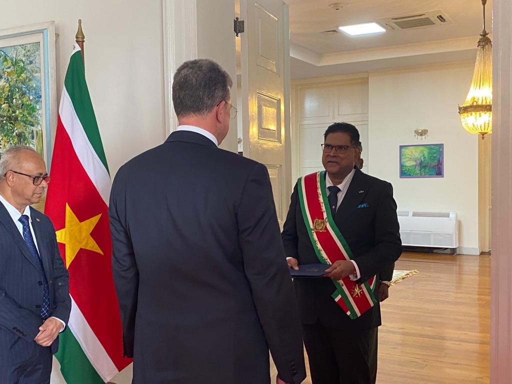 Robert J. Faucher is dinsdag 31 januari officieel zijn ambtstermijn als de nieuwe Amerikaanse ambassadeur in Suriname begonnen na het overhandigen van zijn geloofsbrieven aan president Chandrikapersad Santokhi. De ceremonie vond plaats in het presidentieel paleis.