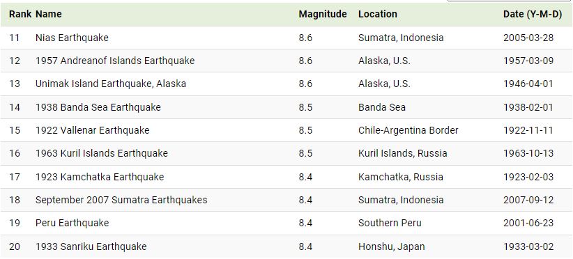 Gebieden in de buurt van Indonesië, Rusland en Chili – allemaal op de grenzen van tektonische platen – hebben de helft van de grootste aardbevingen in de geschiedenis meegemaakt.