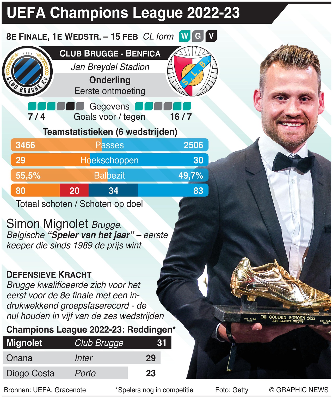 15 februari 2023 – Ronde van de UEFA Champions League van 16 heenwedstrijden, inclusief match-ups tussen Club Brugge en Benfica in het Jan Breydelstadion. De terugwedstrijd voor deze wedstrijd vindt plaats op 7 maart.