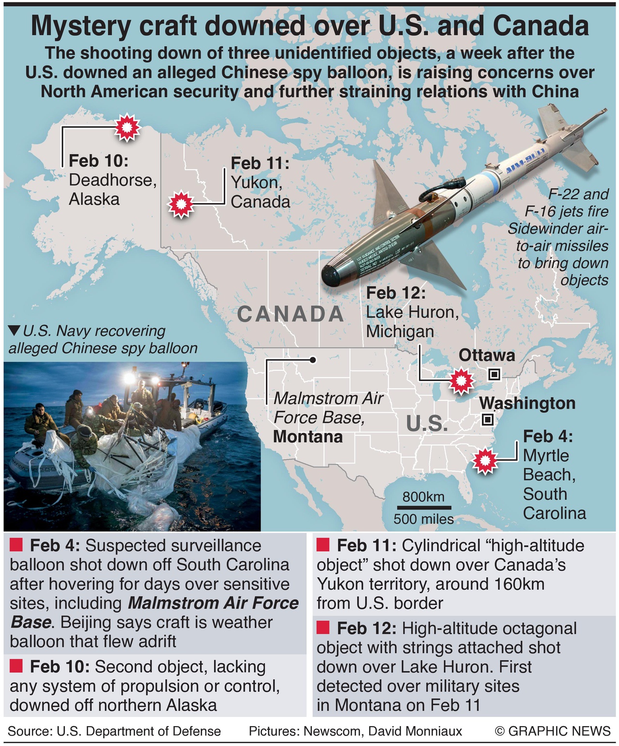 February 13, 2023 – Het neerschieten van drie niet-geïdentificeerde objecten, een week nadat de VS een vermeende Chinese spionageballon neerhaalden, geeft aanleiding tot bezorgdheid over de Noord-Amerikaanse veiligheid en verdere spanningen met China.