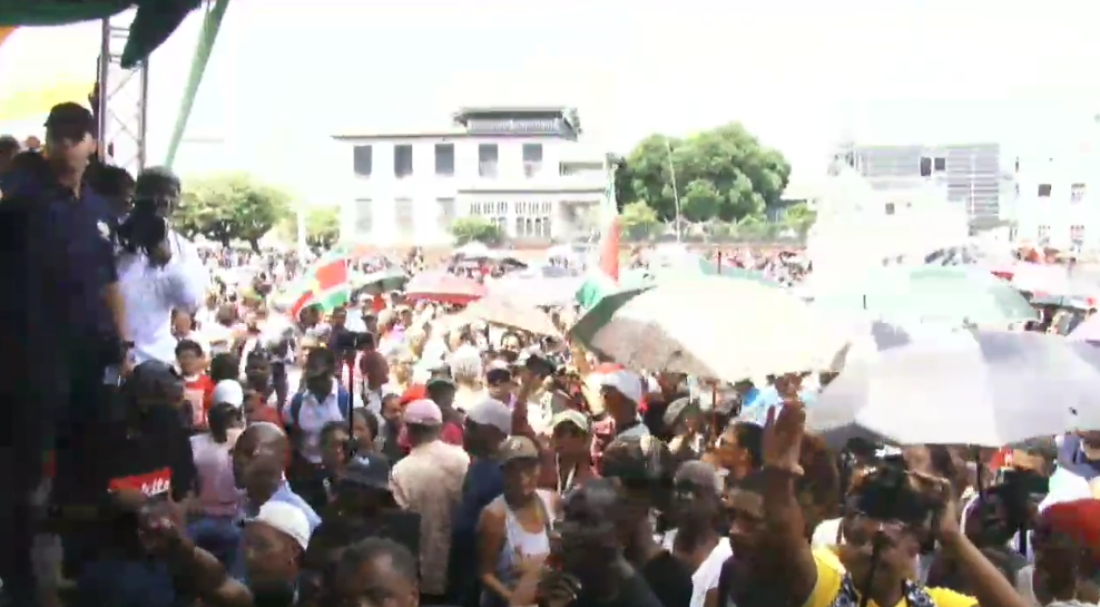 Het massale protest moet een duidelijk signaal zijn voor president Chandrikapersad Santokhi en vicepresident Ronnie Brunswijk. Zij kunnen met goed fatsoen dit protest niet negeren.