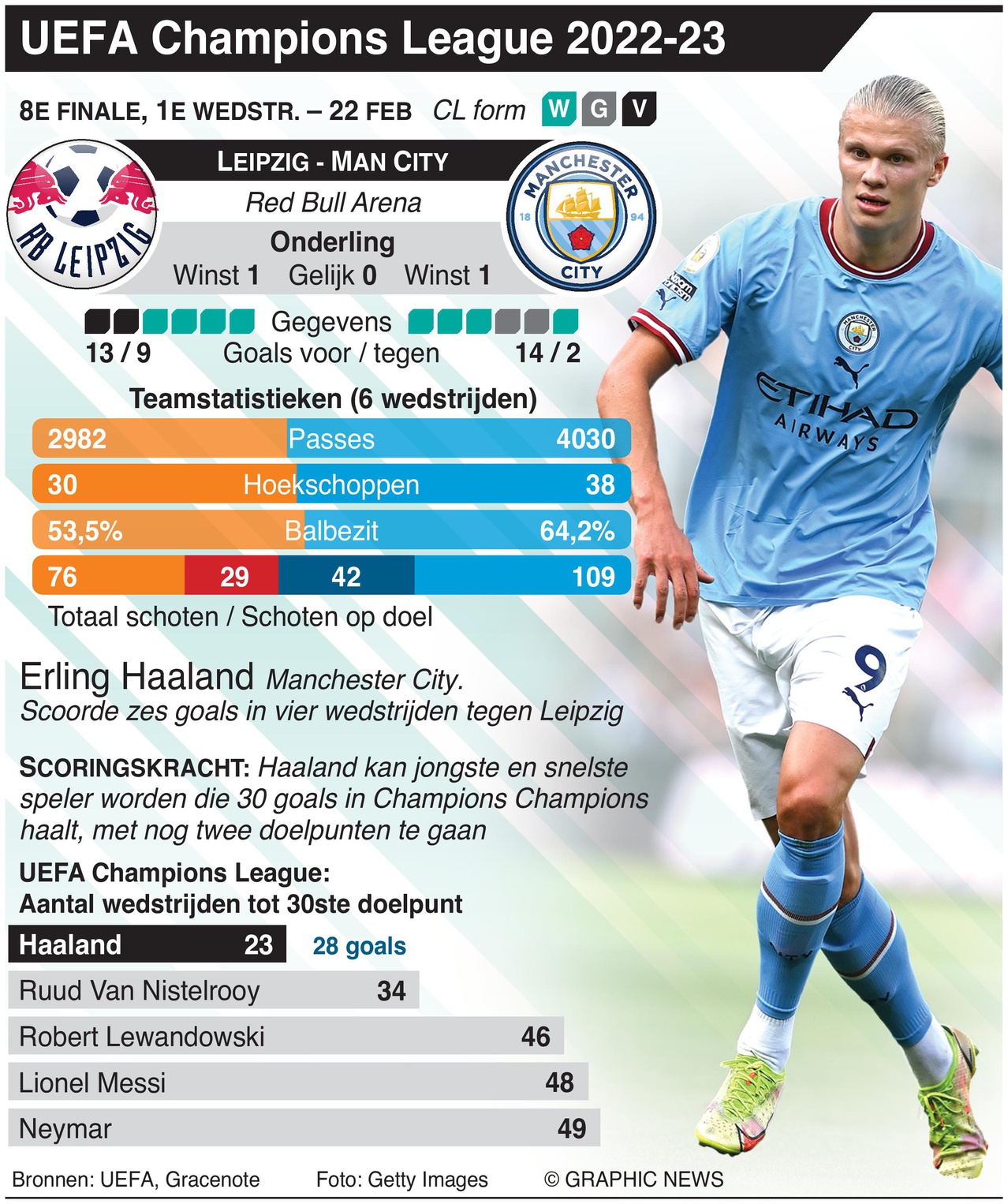 22 februari 2023 – UEFA Champions League-ronde van 16 wedstrijden in de heenwedstrijd, inclusief wedstrijden tussen RB Leipzig en Manchester City in de Red Bull Arena. De terugwedstrijd voor deze wedstrijd vindt plaats op 14 maart.