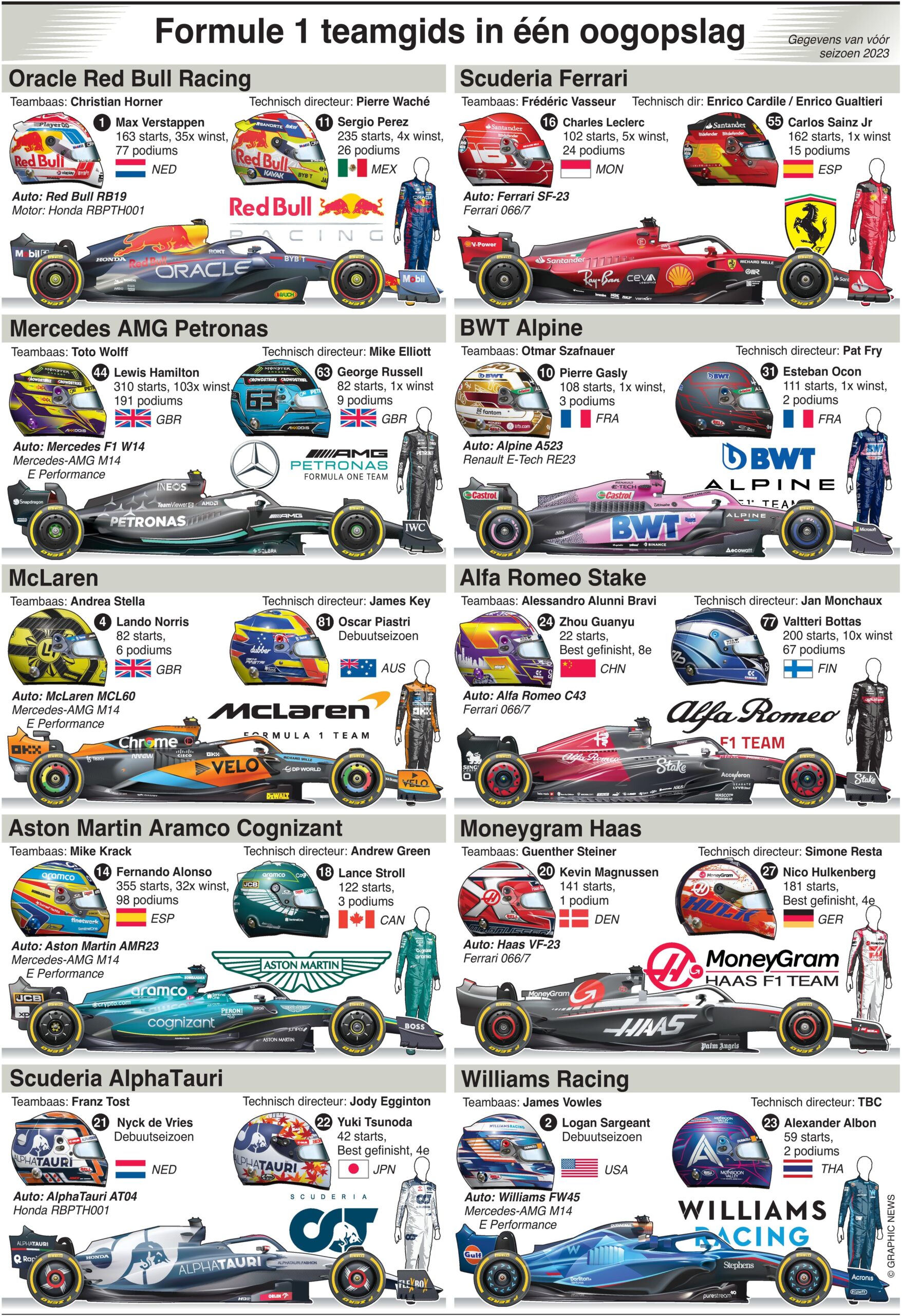 3 maart 2023 – 26 november 2023 – Het 74e Formule 1 Wereldkampioenschap begint met de Grand Prix van Bahrein en eindigt in november in Abu Dhabi, met tien teams die strijden om de titel.