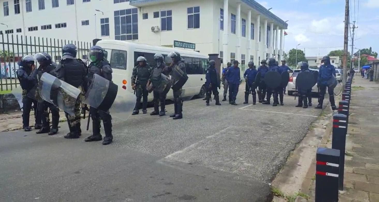 Bij het Kantongebouw aan de Wulfinghstraat was vrijdagmiddag sprake van zware beveiliging. De wegen rondom het Kantongebouw werden afgesloten. Ook winkels in de omgeving werden uit voorzorgsmaatregelen gesloten gehouden. De veiligheidsautoriteiten houden uiteraard, na de geweldsexplosie van een week eerder, rekening met alles en dat is en was te verwachten. Voor vrijdag was opgeroepen om naar het Kantongerecht te komen, ter steun voor de ‘martelaar’ Pakittow. Maar, er waren meer journalisten dan ‘leden van de fanclub van Pakittow’.