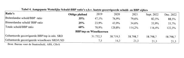De Nationale Assemblee heeft vrijdagavond de wijziging van de Wet op de Staatsschuld goedgekeurd. Het wetsvoorstel voor wijziging van de wet werd met 26 stemmen voor, en 12 stemmen tegen aangenomen. Met de inwerkingtreding van de gewijzigde Wet op de Staatsschuld zal de regering zich wettelijk hebben ingedekt voor overschrijding van het obligo plafond van 60% dat geldt voor leningen van de overheid.