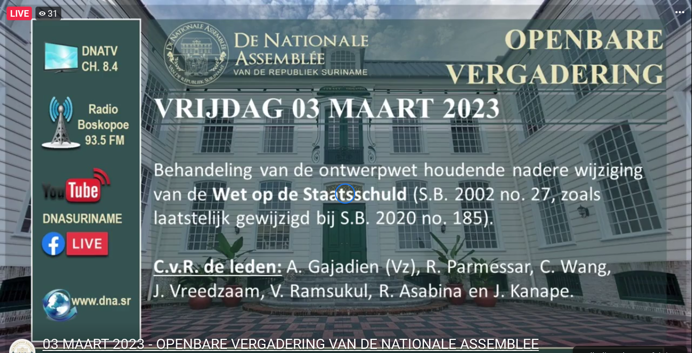 De Nationale Assemblee heeft vrijdagavond de wijziging van de Wet op de Staatsschuld goedgekeurd. Het wetsvoorstel voor wijziging van de wet werd met 26 stemmen voor, en 12 stemmen tegen aangenomen. Met de inwerkingtreding van de gewijzigde Wet op de Staatsschuld zal de regering zich wettelijk hebben ingedekt voor overschrijding van het obligo plafond van 60% dat geldt voor leningen van de overheid.